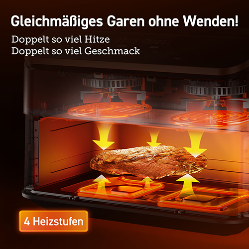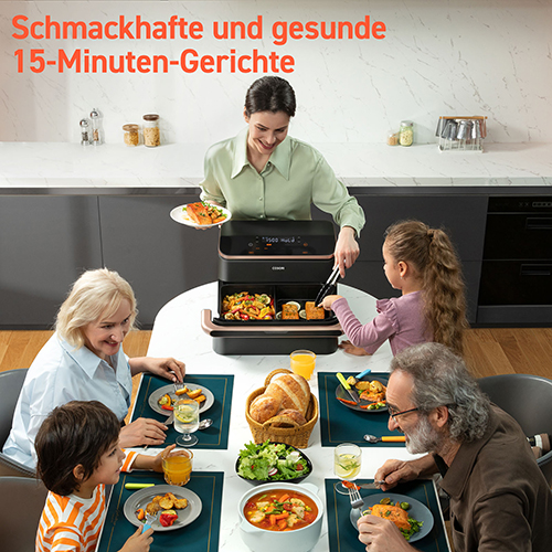 Mit dem Cosori DualBlaze TwinFry erlebst du die nächste Stufe der Kücheninnovation, die dir nicht nur Zeit und Mühe spart, sondern auch deine kulinarischen Möglichkeiten enorm erweitert. Stell dir vor, du kannst gleichzeitig zwei verschiedene Gerichte zubereiten – knusprige Pommes für die Kinder und ein perfekt gegrilltes Gemüse als Beilage – ohne Kompromisse bei Geschmack oder Qualität eingehen zu müssen. Dieses Gerät macht es möglich und bringt dir den Komfort und die Vielseitigkeit in deine Küche, die du dir schon immer gewünscht hast.