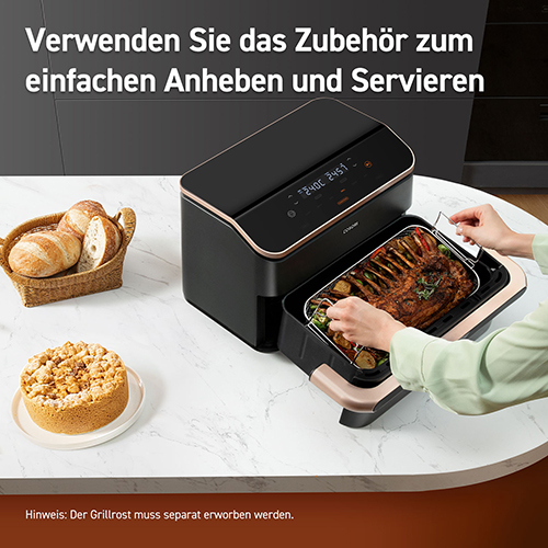 Ob knusprige Chicken Wings für den Filmabend, knackige Gemüsechips als gesunder Snack zwischendurch oder ein saftiges Steak mit perfekt gegrillten Beilagen – der Cosori DualBlaze TwinFry macht alles möglich. Nutze ihn zum Backen von kleinen Kuchen oder zum Dehydrieren von Früchten für selbstgemachte Leckereien. Die vielfältigen Funktionen eröffnen dir ganz neue Wege in der Küche und lassen keine Wünsche offen.