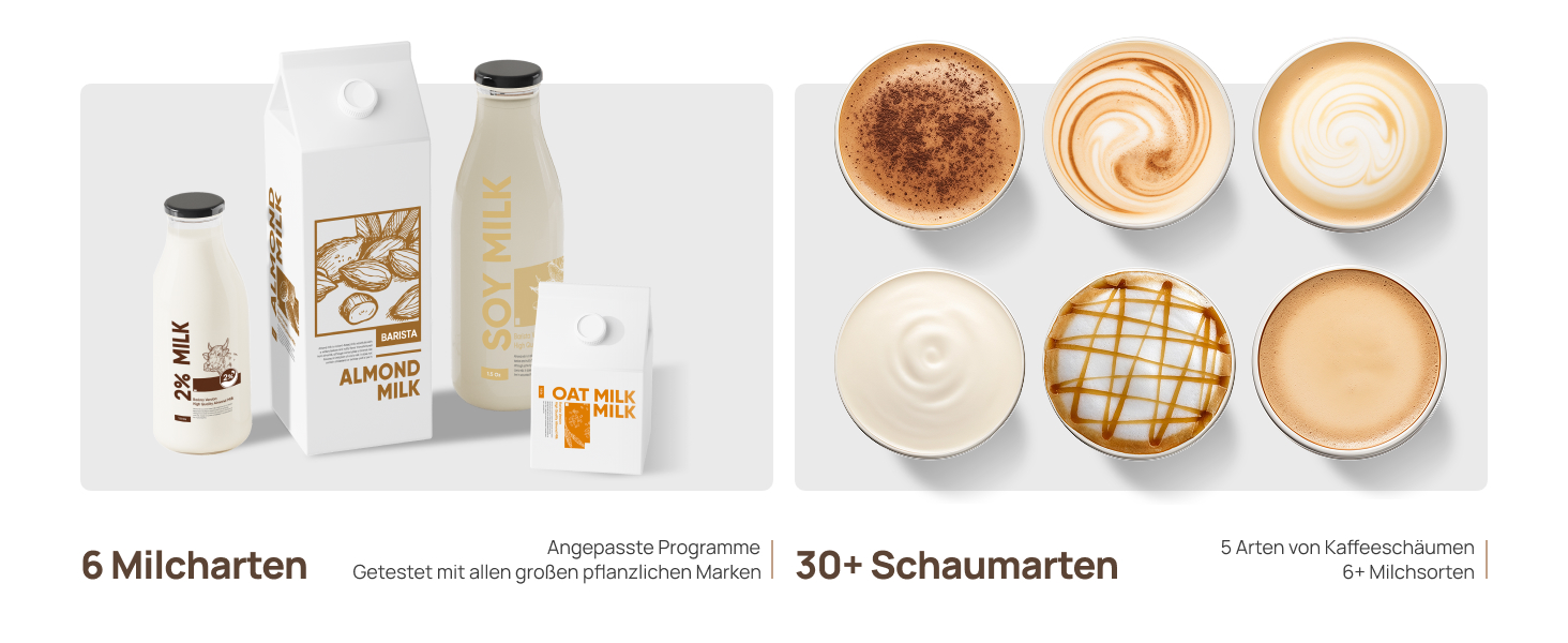 Der Dreo BaristaMaker ist kompatibel mit Mandel-, Soja-, Hafer- und Kokosmilch und sorgt auch hier für perfekten Schaum. Damit ist er die optimale Wahl für alle, die auf pflanzliche Alternativen setzen oder laktosefrei genießen möchten.