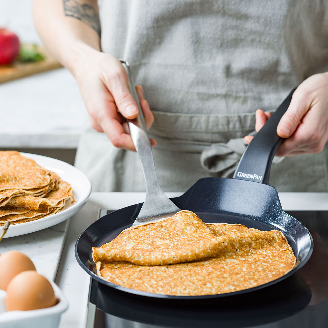Mit der Greenpan Essence Pfannkuchenpfanne genießen Sie das perfekte Kocherlebnis, das Ihnen nicht nur köstliche Pancakes zaubert, sondern auch Ihren Alltag erleichtert. Diese Pfanne ermöglicht es Ihnen, mühelos gleichmäßig gebackene Pfannkuchen zu kreieren – für unvergessliche Frühstücksmomente mit Familie und Freunden. Stellen Sie sich vor, wie das zarte Aroma frisch gebackener Pfannkuchen durch Ihre Küche zieht und jeder Bissen pure Freude bereitet.