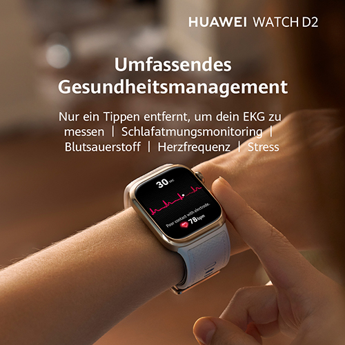 Vertrauen Sie auf die Expertise eines weltweit renommierten Technologiekonzerns mit jahrelanger Erfahrung in Gesundheits- und Wearable-Technologien. Die Huawei Watch D2 wurde sorgfältig entwickelt und getestet, um Ihnen höchste Genauigkeit und Zuverlässigkeit zu bieten – unterstützt durch eine engagierte Gesundheits-Community sowie Möglichkeiten zur häuslichen Pflegeintegration. So sind Sie nicht nur bestens versorgt, sondern auch Teil eines Netzwerks, das Sie auf Ihrem Weg zu mehr Gesundheit begleitet.