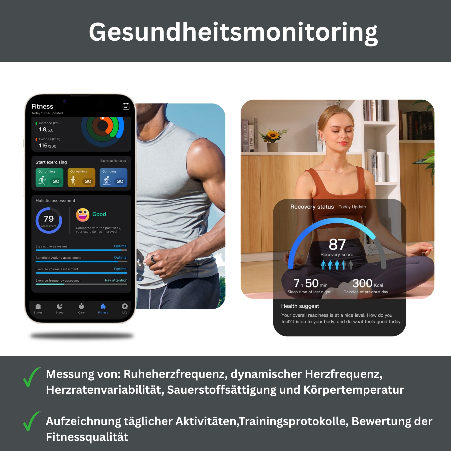 Der Imiki Ring 2 ist dein idealer Begleiter in vielen Situationen: Nutze ihn beim Joggen, um deine Fitnessdaten im Blick zu behalten; trage ihn bei der Arbeit, um diskret über wichtige Nachrichten informiert zu werden; setze ihn als smarten Wecker ein oder lass dich an regelmäßige Trinkpausen erinnern – so integrierst du gesunde Routinen ganz leicht in deinen Alltag. Auch für Menschen mit einem stressigen Terminplan oder gesundheitlichen Herausforderungen ist dieser Ring eine wertvolle Unterstützung.