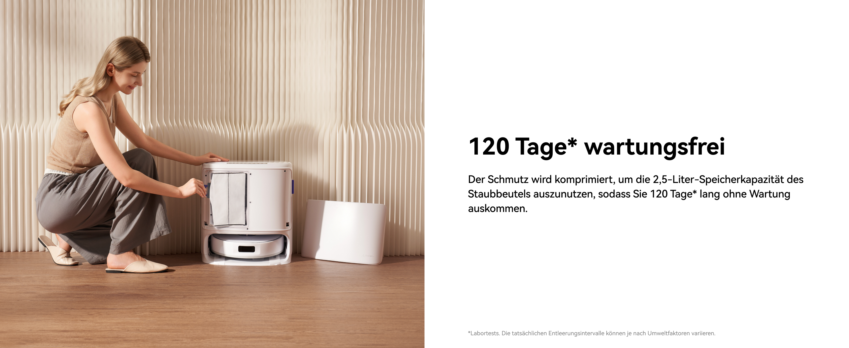Der Narwal Freo X10 Pro ist mit einer hochintelligenten KI-Basisstation ausgestattet, die bis zu 120 Tage wartungsfrei arbeitet. Diese Basisstation übernimmt nicht nur das automatische Entleeren des Staubbehälters inklusive einer innovativen Staubkomprimierung, sondern trocknet auch die Mopp-Pads bei bis zu 45°C hygienisch sauber und wäscht sie eigenständig. So genießen Sie maximale Hygiene und Komfort ohne lästigen Aufwand. Dank der millimetergenauen Präzision navigiert der Roboter sicher durch Ihr Zuhause und vermeidet Hindernisse souverän.
