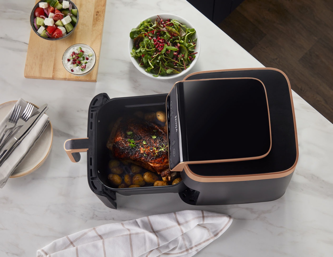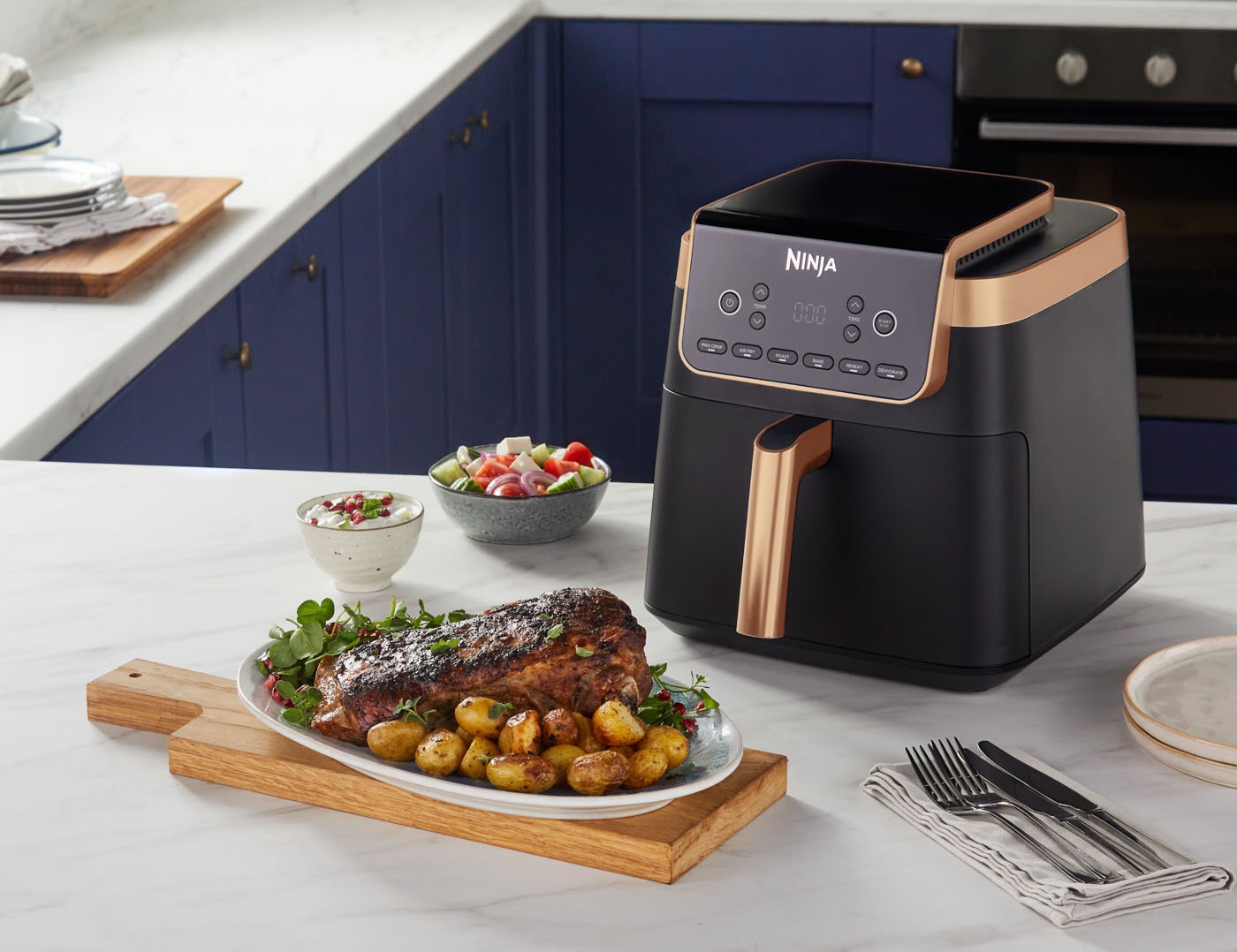 Diese schnelle und effiziente Heißluftfritteuse von Ninja verbraucht bis zu 60 % weniger Energie als ein Backofen**, so dass du bei deinen Energierechnungen Geld sparen kannst, ohne auf selbstgekochtes Essen verzichten zu müssen.